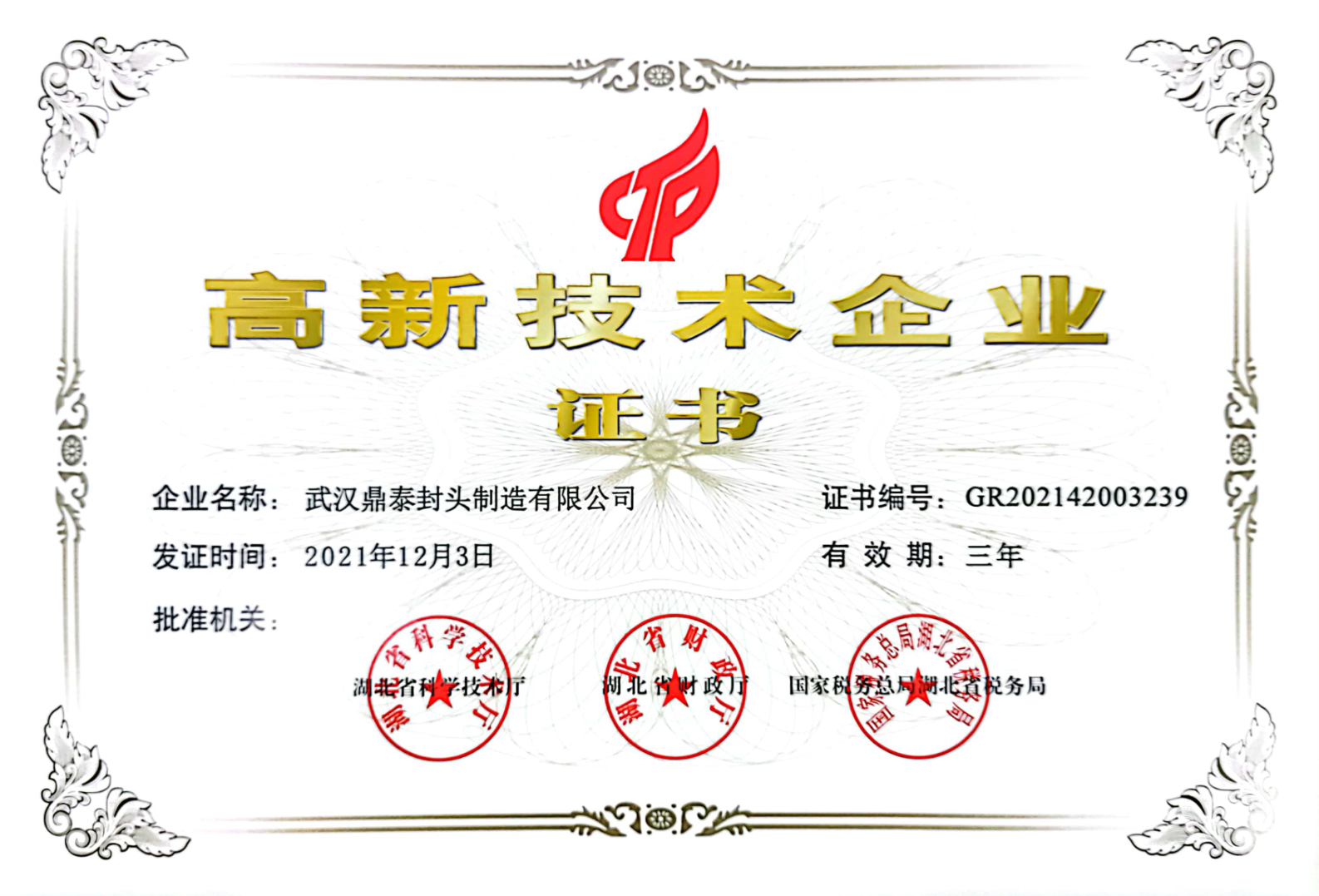 高新技術(shù)企業(yè)證書